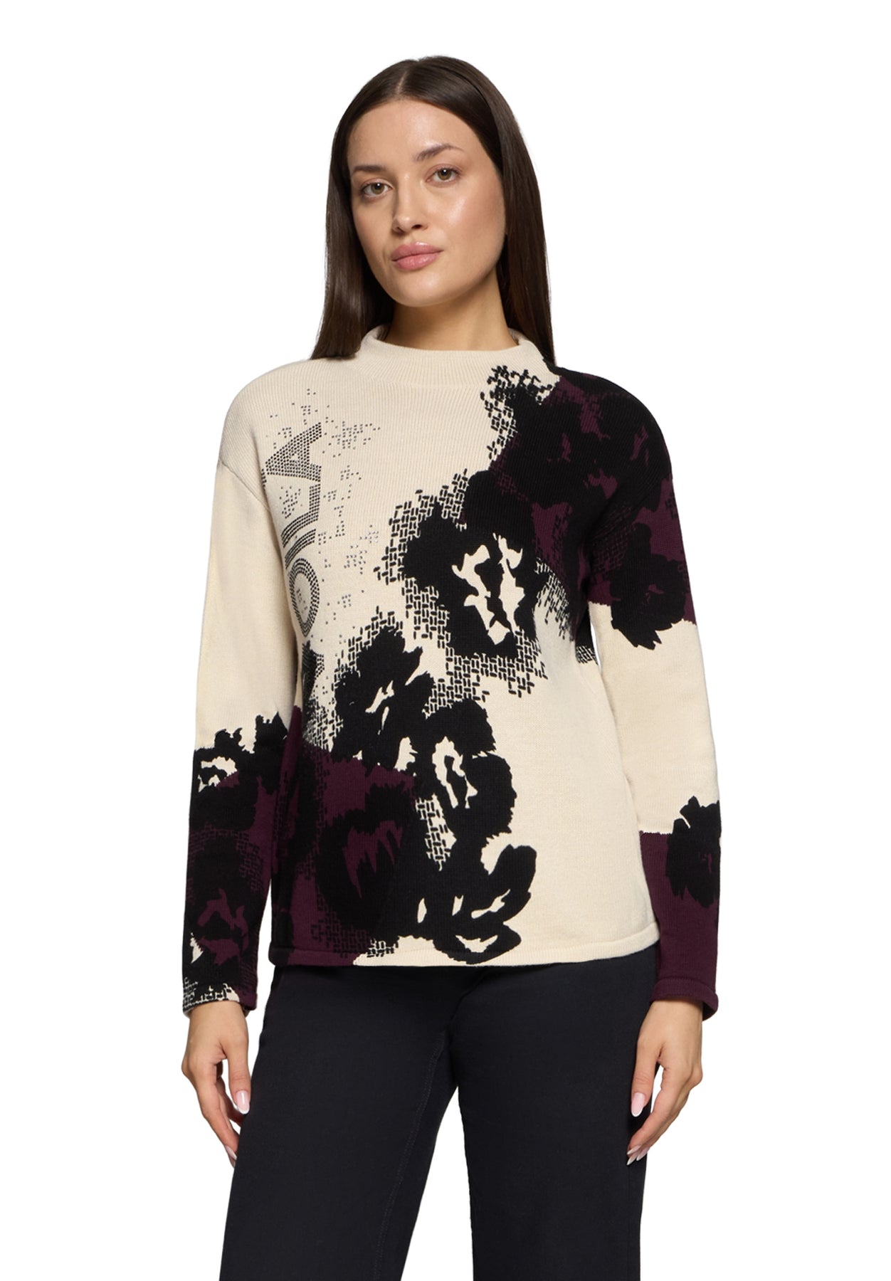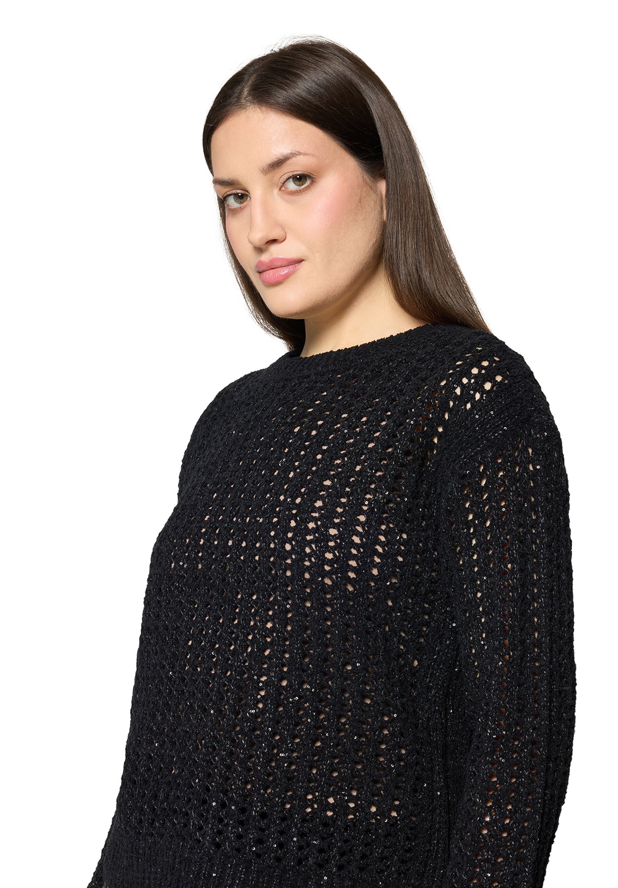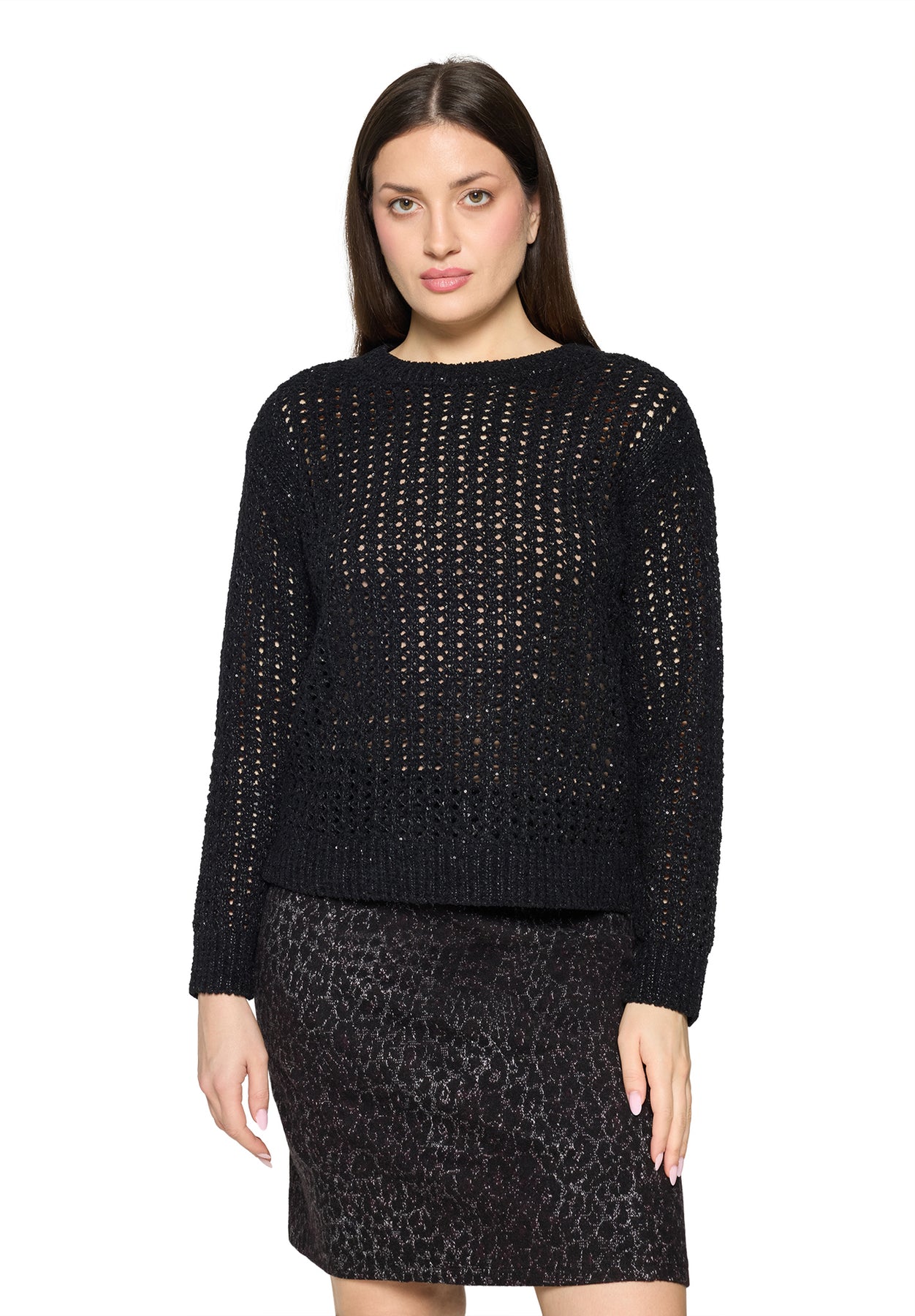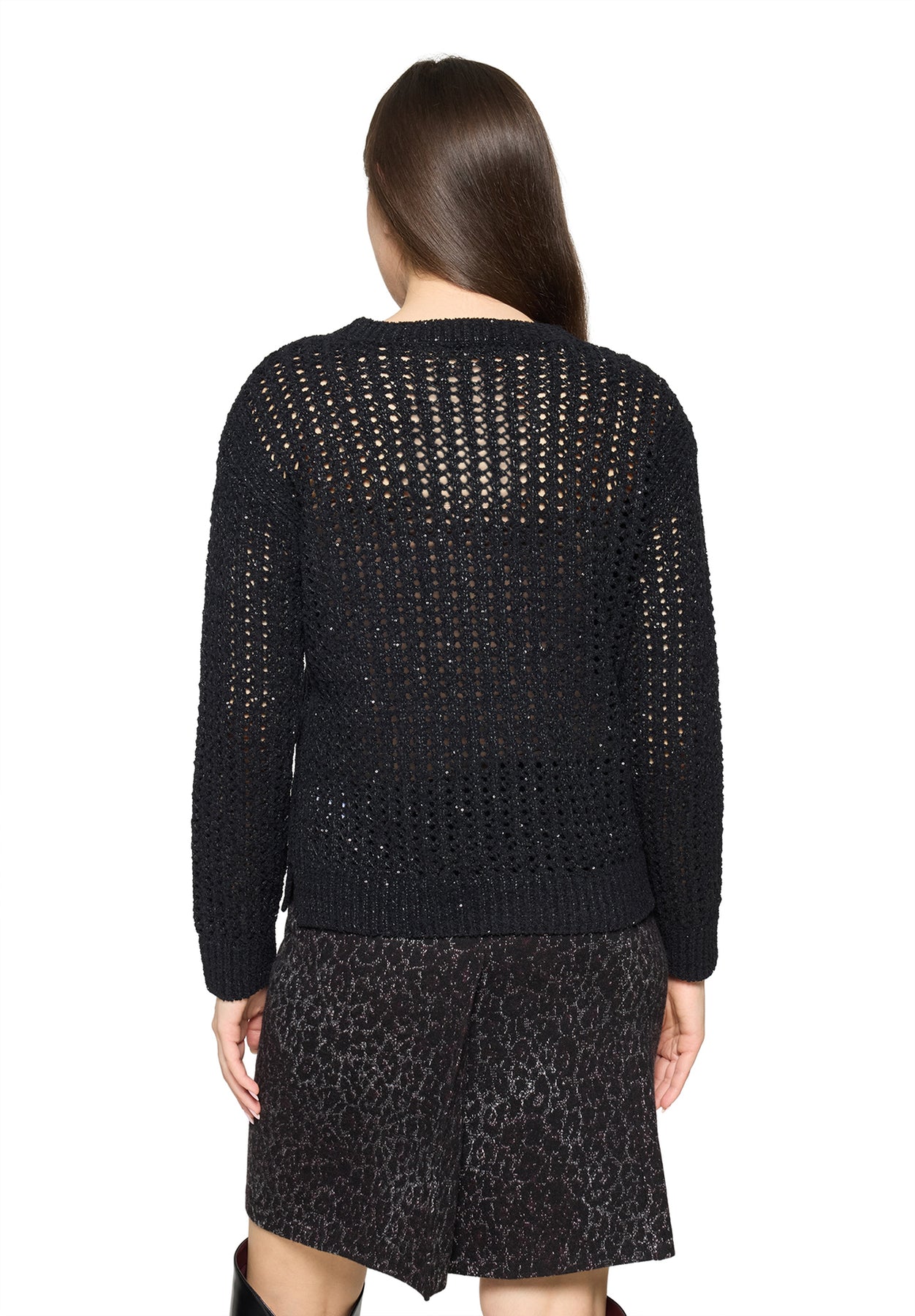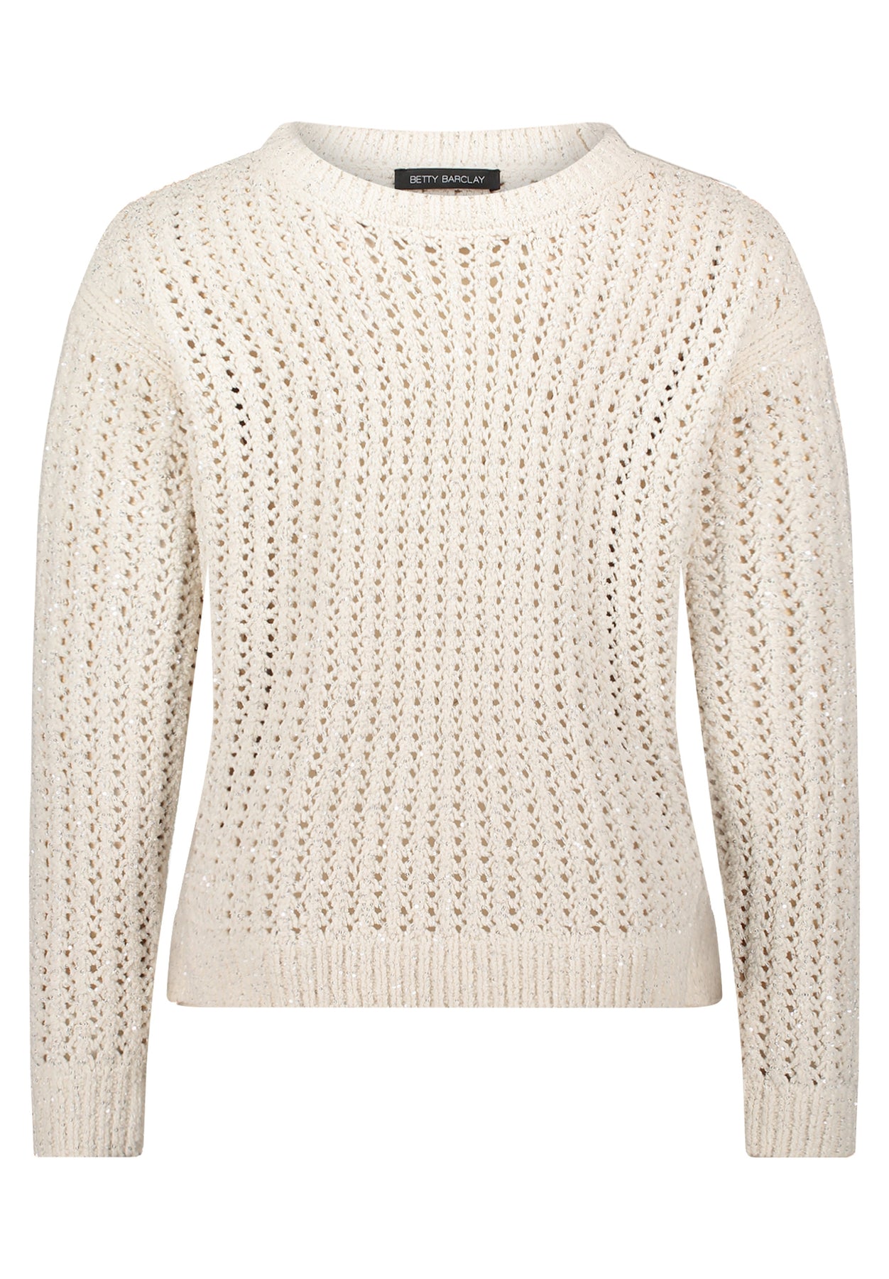 The standout feature is its open-work knit pattern, giving the jumper a chic, handcrafted look while keeping it light and breathable. A classic crew neckline, relaxed fit, and ribbed edges bring that easy, everyday comfort Betty Barclay is known for.