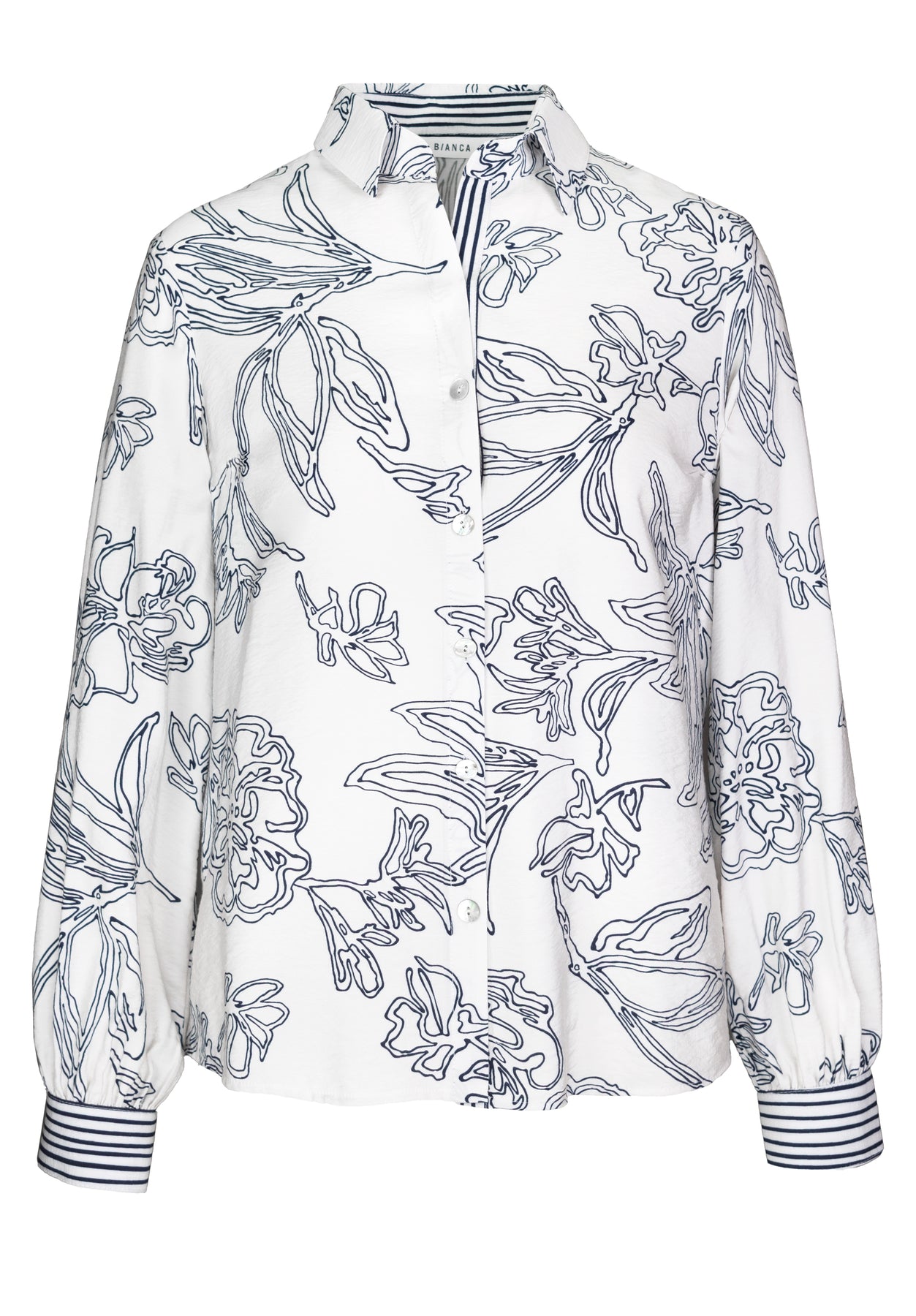 Crafted from lightweight, breathable fabric, this Bianca women’s printed blouse features an intricate floral design in shades of blue, white, mint green, and black, offering a sophisticated yet playful aesthetic perfect for any occasion.