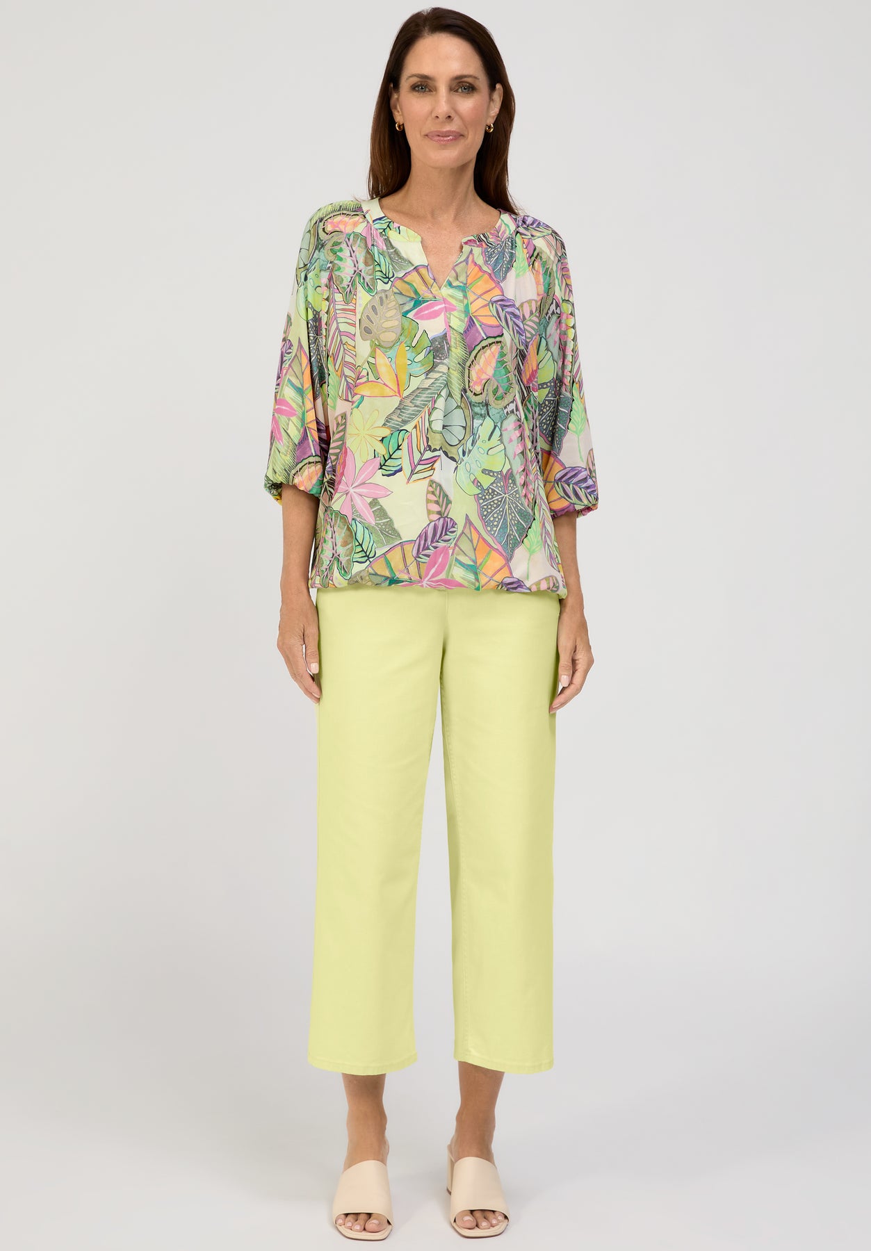 The V-neckline with gentle pleating flatters all body types, while the 3/4 length sleeves with contrast patterned cuffs add a stylish and unique touch. Whether you're dressing up for a casual brunch, heading to the office, or transitioning into evening events, this boho-chic floral blouse adds flair and comfort in equal measure.