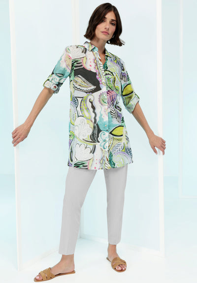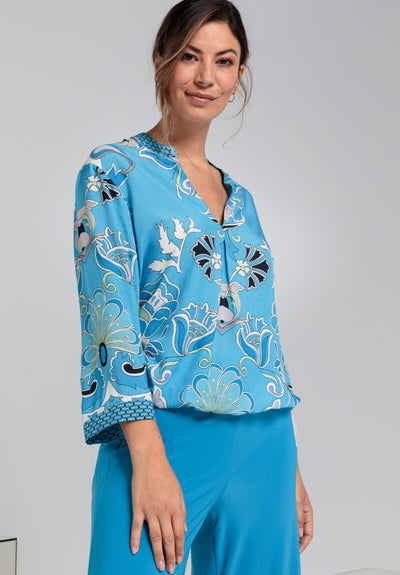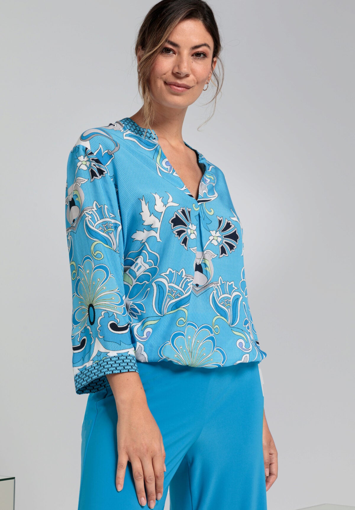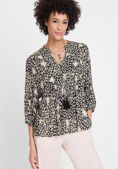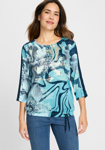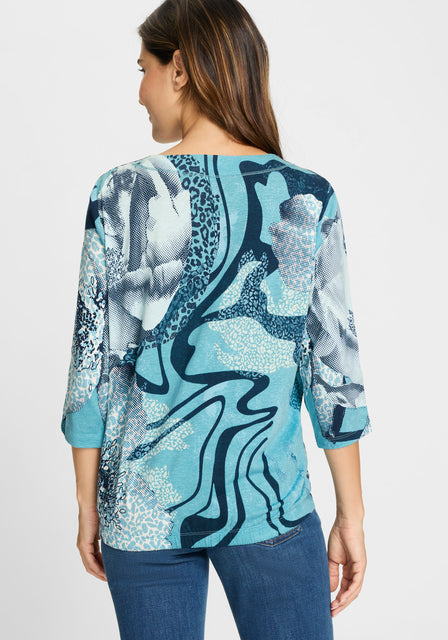 RABE Abstract Print Blouse – Relaxed 3/4 Sleeve Top