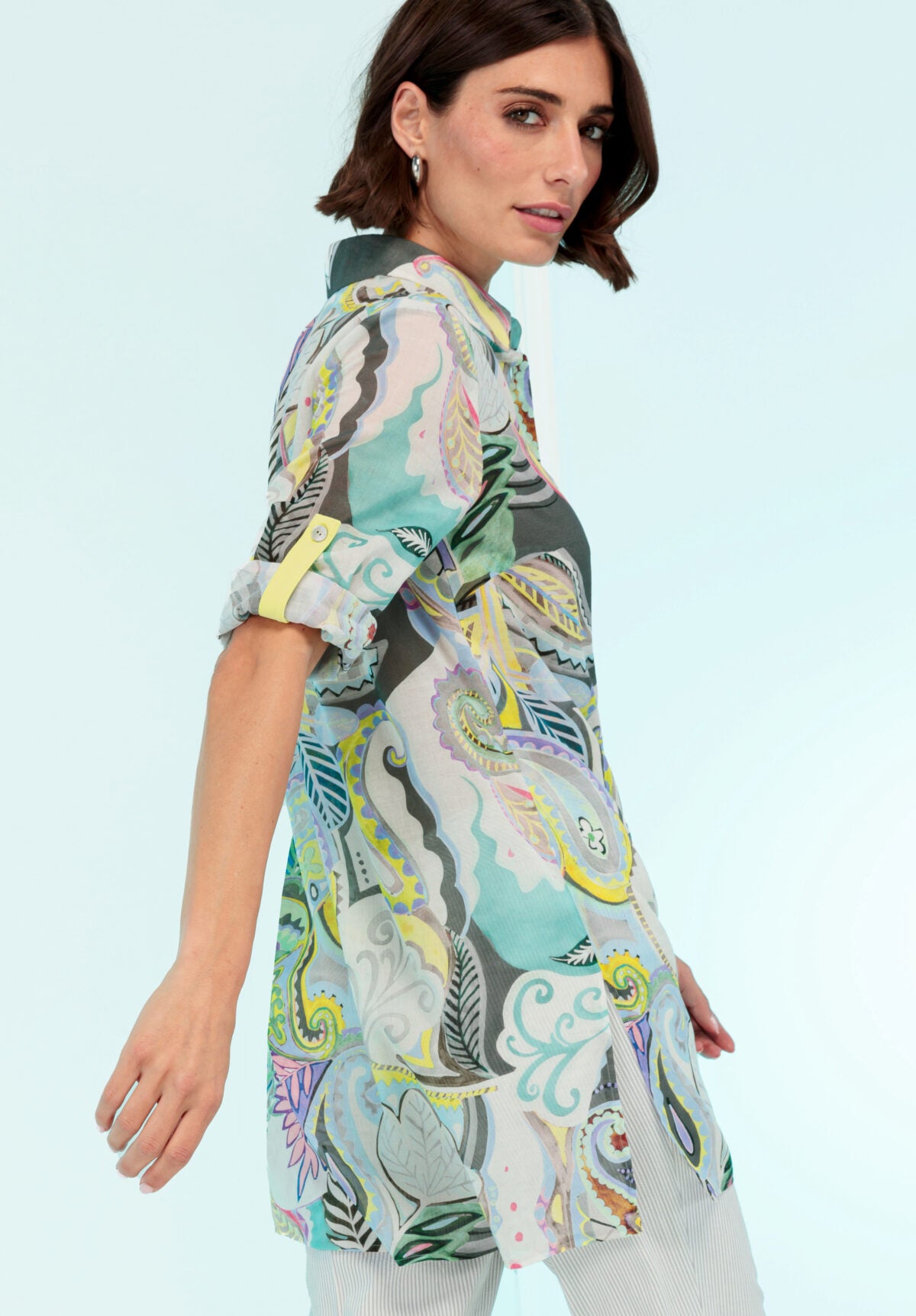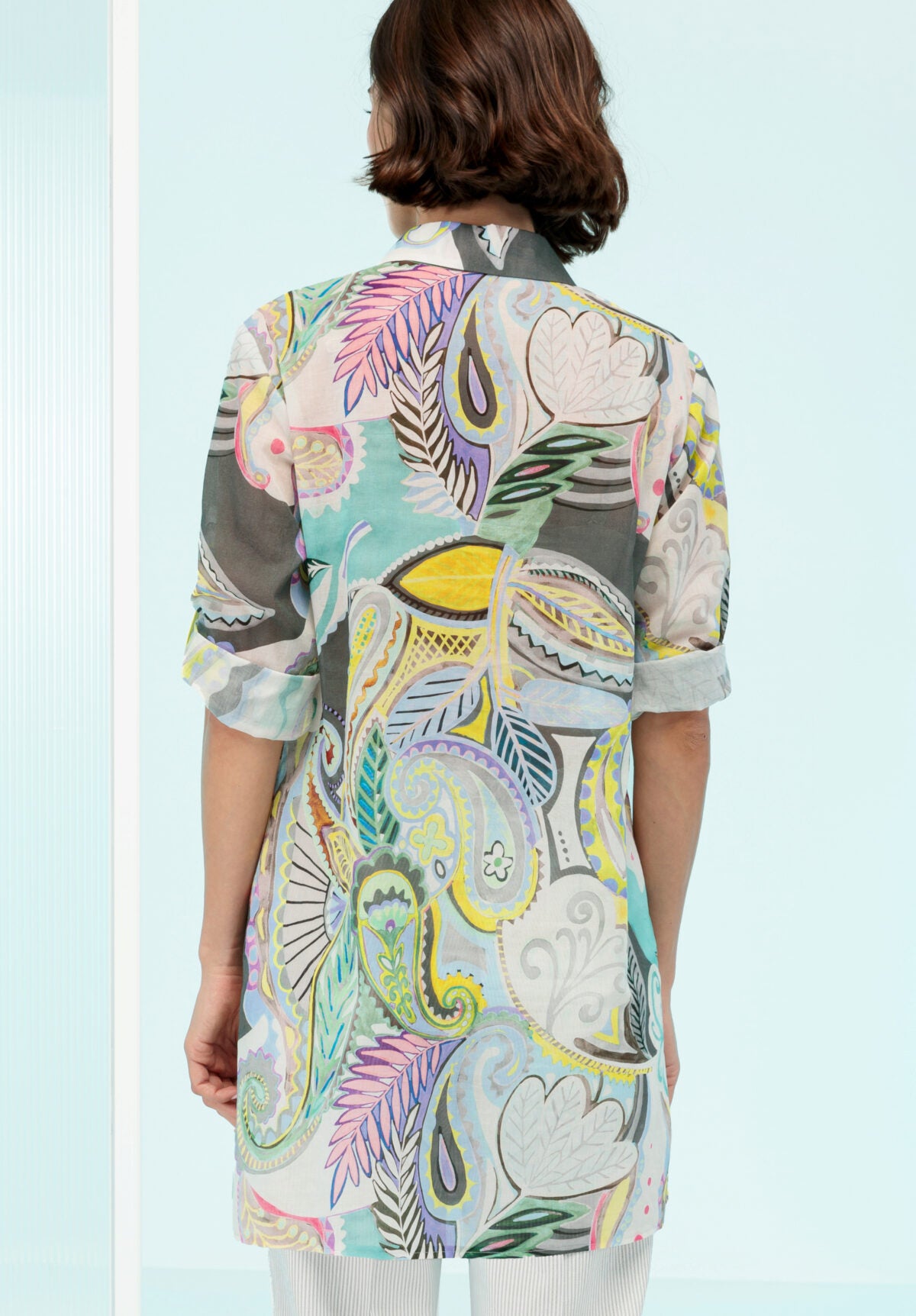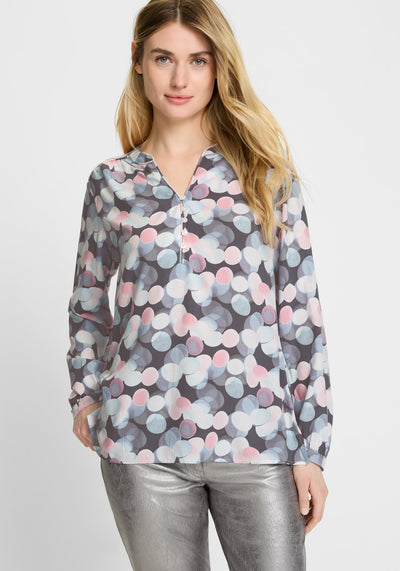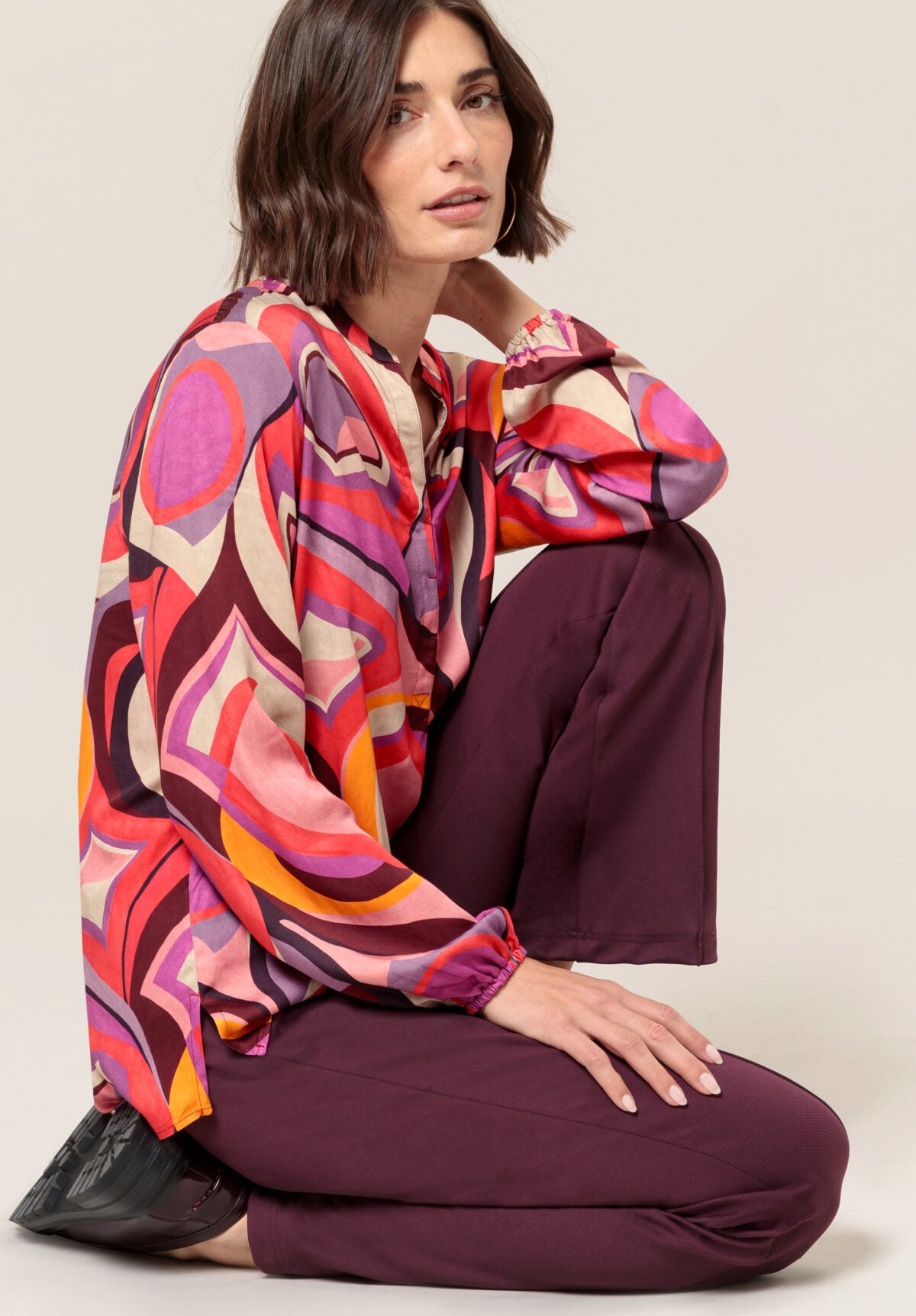 Add a touch of modern elegance to your wardrobe with this RABE abstract print blouse, designed with a flattering relaxed fit and effortless style. The soft fabric drapes beautifully, while the artistic pastel and neutral tones create a chic, versatile look that pairs seamlessly with jeans, trousers, or skirts.