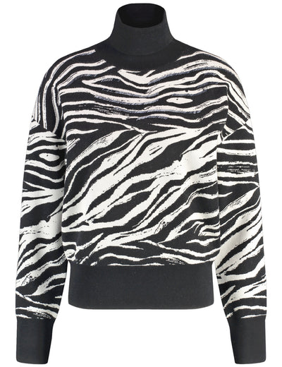 Step into statement style with this zebra print turtleneck sweater, a perfect blend of comfort and modern fashion. Featuring a striking black and white animal print design, this sweater adds a bold, trend-forward edge to any outfit.