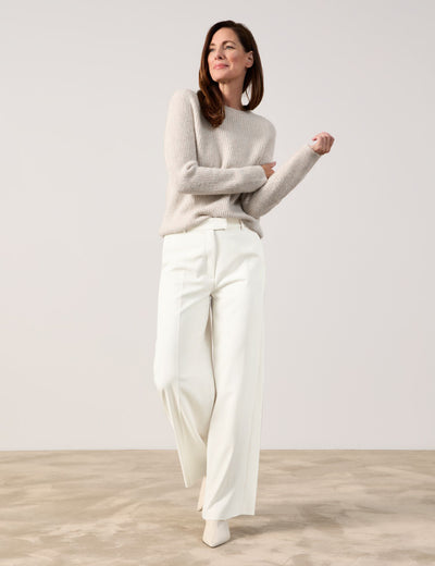 Crafted from a soft, breathable knit, it offers both warmth and all-day comfort. The high neckline provides a chic, cosy feel, while the ribbed cuffs and hem ensure a flattering fit. With its oversized silhouette, this sweater pairs effortlessly with jeans, leather pants, or a sleek skirt for a polished yet casual look.