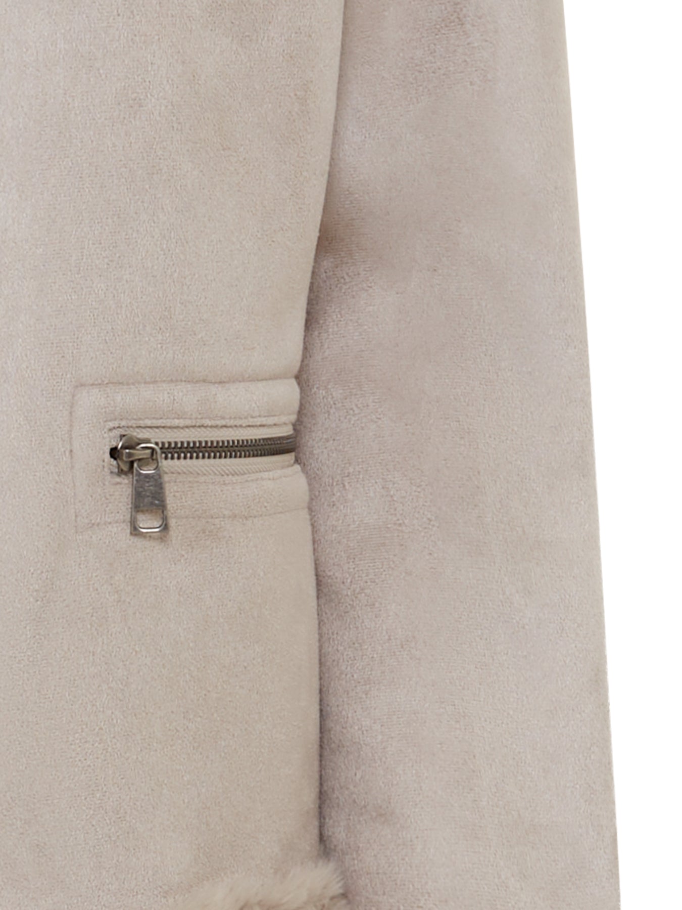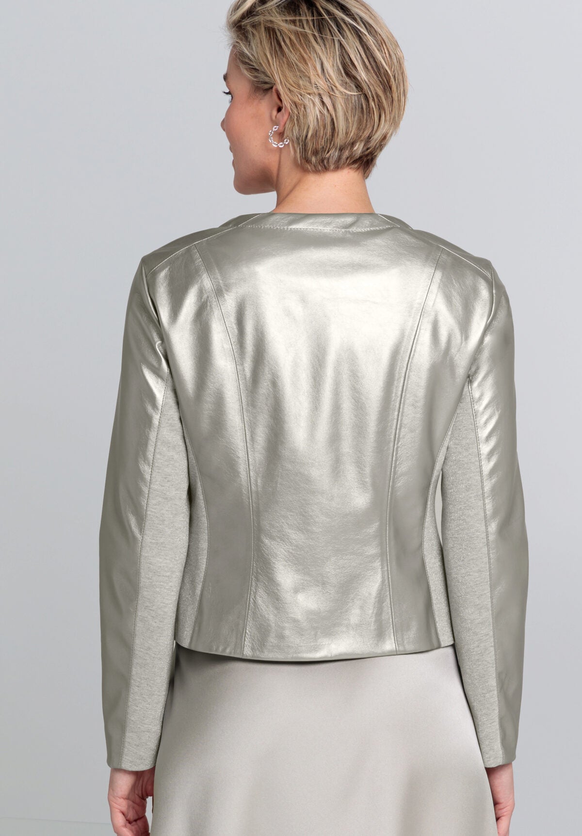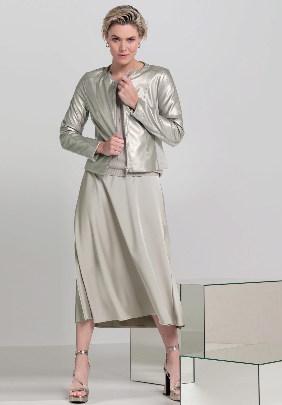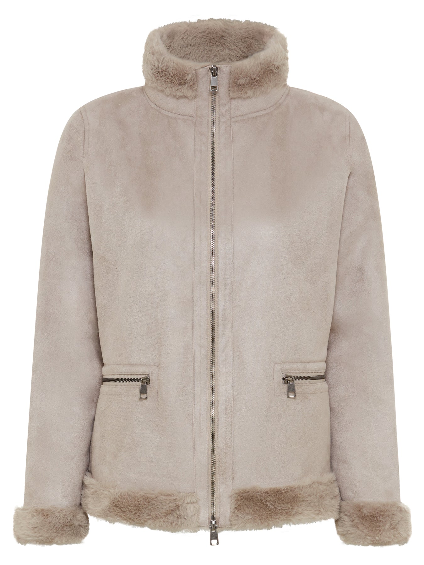 Crafted with a subtle shine, water-resistant fabric, this jacket keeps you cosy during chilly days while adding a sleek, contemporary touch to your wardrobe. The stand-up collar and full front zipper closure provide extra protection against the cold, while the zippered side pockets ensure your essentials are secure and within reach.