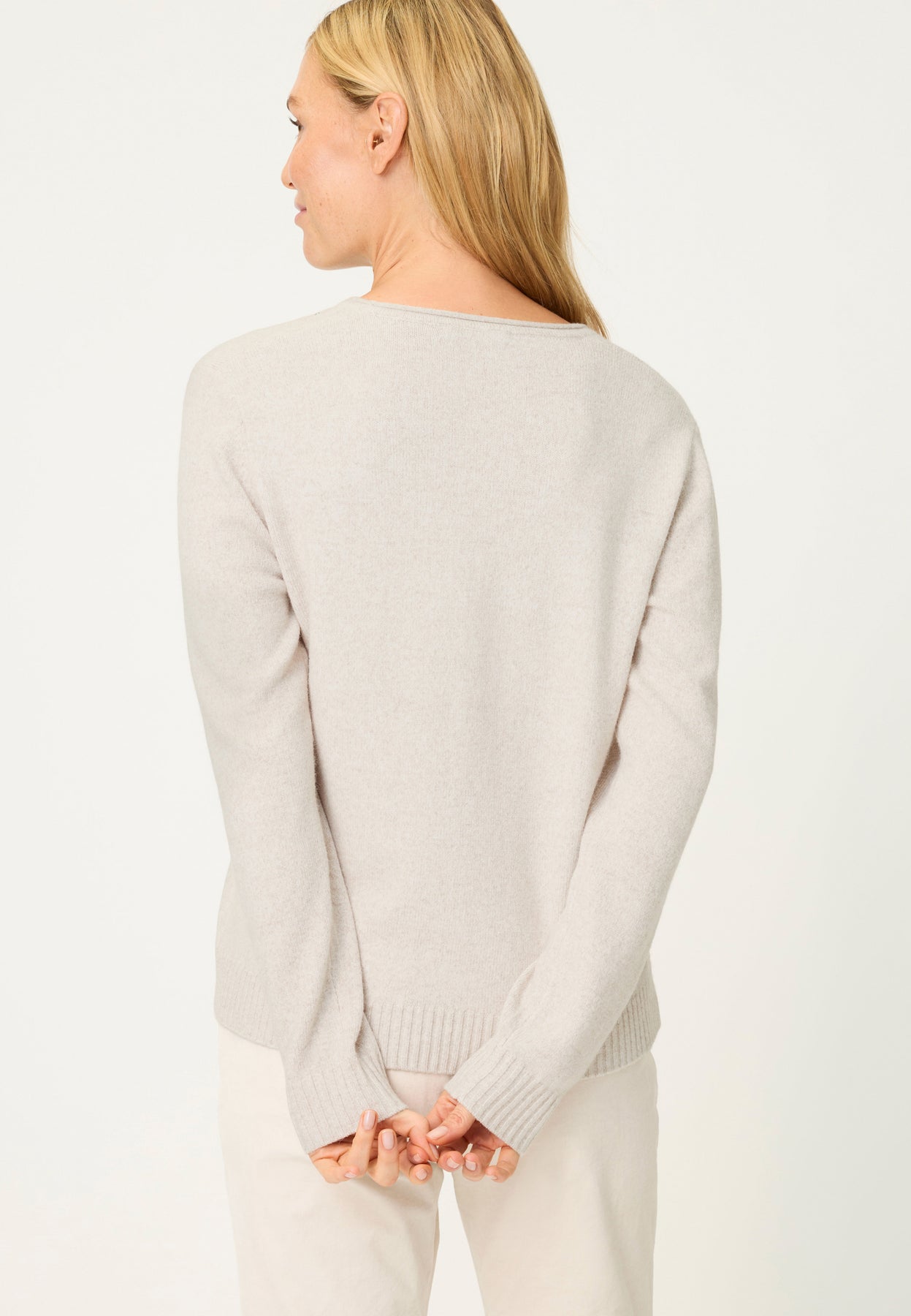 The ribbed crew neckline and cuffs provide a classic silhouette, while the soft knit fabric ensures comfort and warmth. Its timeless champagne colour makes it a standout piece for the cooler seasons, easily paired with skirts, tailored trousers, or your favourite jeans for a chic, polished look.