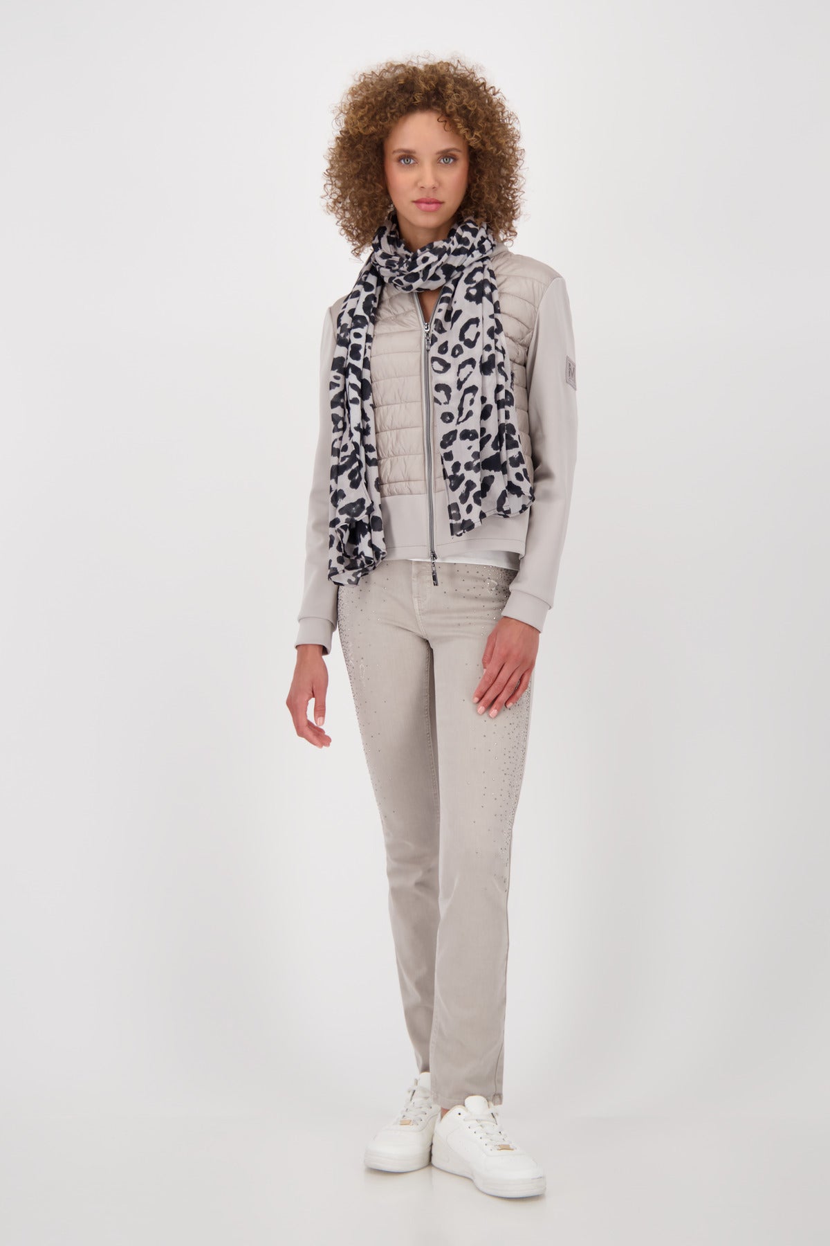 The crew neckline and relaxed fit make it perfect for layering over a camisole or pairing with your favourite jeans, trousers, or skirts. Ribbed cuffs and hemline offer a secure yet comfortable fit, while the subtle gradient detail at the hem and sleeves adds a modern twist to the classic leopard print.